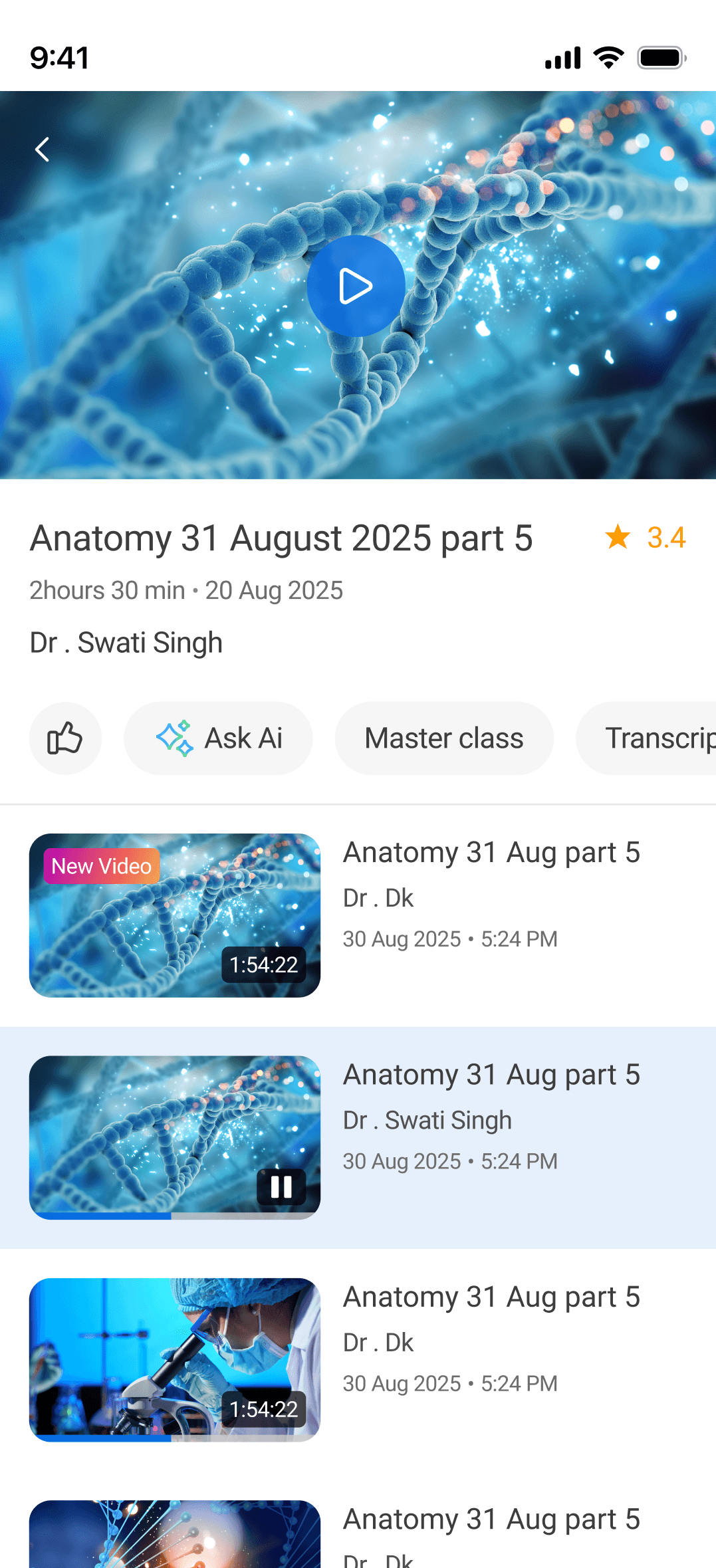A conversational AI interface allows students to ask questions and receive contextual answers based on the academy’s learning materials.By analyzing notes, PDFs, and lecture content, the AI assistant helps students quickly understand concepts and retrieve relevant resources without manually searching across the platform.